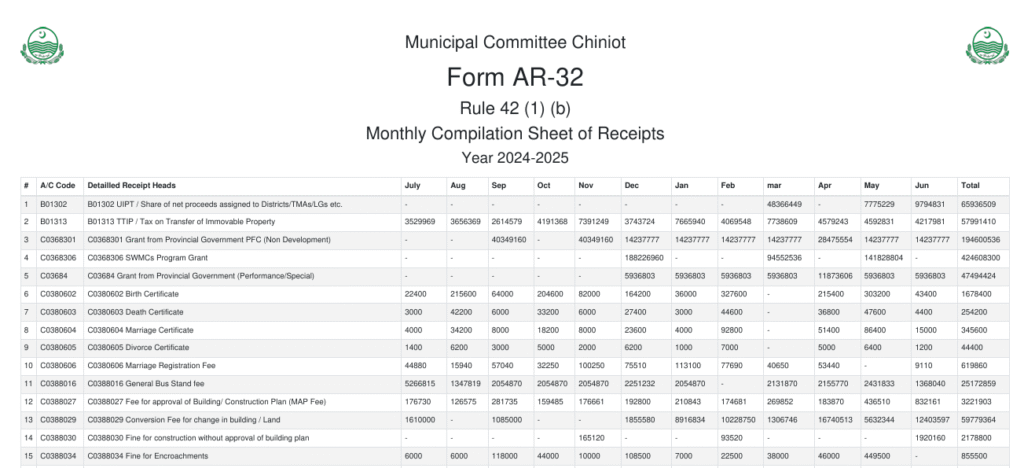 Monthly Receipts 2024-25 Details